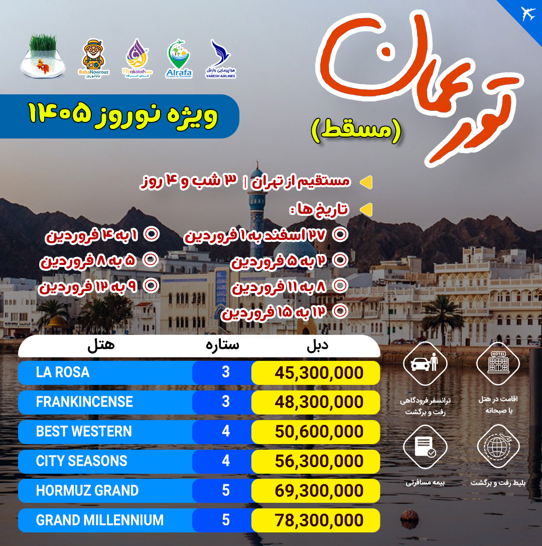 تور مسقط از تهران 3 شب و 4 روز ویژه نوروز